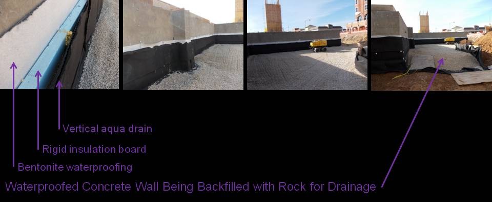 In the construction photos at the beginning of the post, the bentonite system is seen applied to the footings prior to them being backfilled with soil.