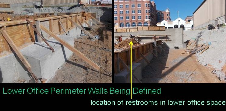 As construction progresses the perimeter of the lower office area becomes more defined and begins to give the plumber and electrician a sense of the floor layout.