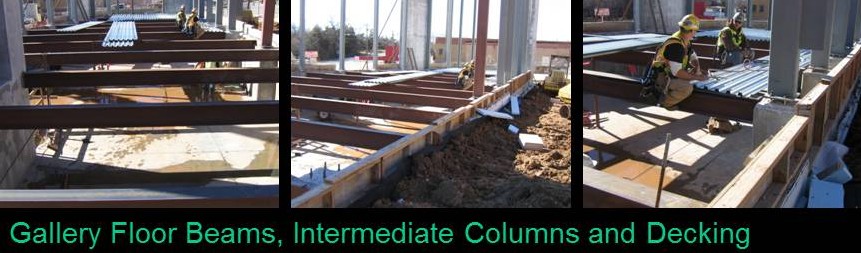 An assembly in the design/construction world is used to describe a group of materials that are brought together to work as a unit. The floor assembly for the Gallery is made up of several components; steel beams, metal decking, headed studs, reinforcing bars and concrete on top of which is laid the flooring material.