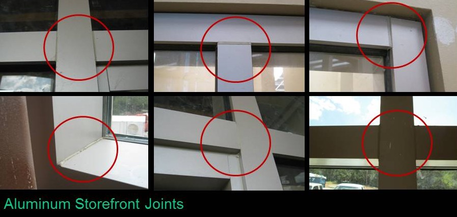 The aluminum trim on the aluminum curtain wall should be cut for a tight fit that does not require caulking.