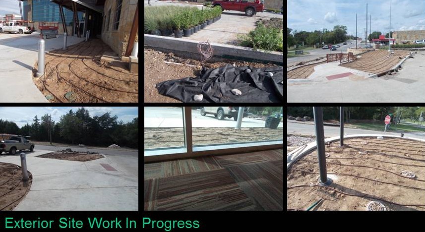The exterior site is a mixed bag of completeness. Drives, walks and railing are installed. But the ground is bare and the landscaping effort has only just begun. This includes the installation of plant materials, rock and irrigation system. This work goes quickly, so it should be done in another week.