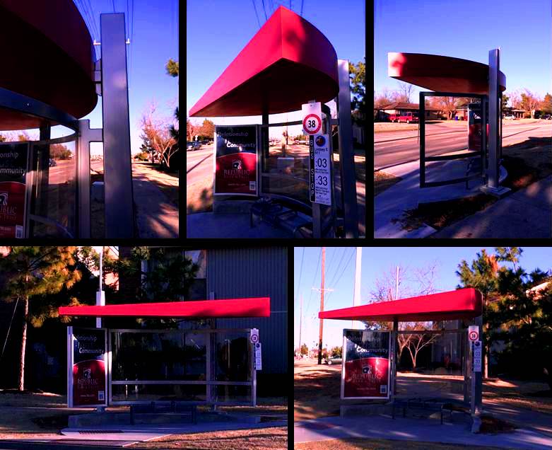 Oklahoma City’s existing bus stops were pretty dismal, nondescript structures. Many bus stops had no protection from the elements consisting of a bench and in many cases only a street sign. A series of the stops consisted of a curved corrugated galvanized metal canopy that was distinctly reminiscent of the WWII Quonset hut. There was a lot of room for improvement.