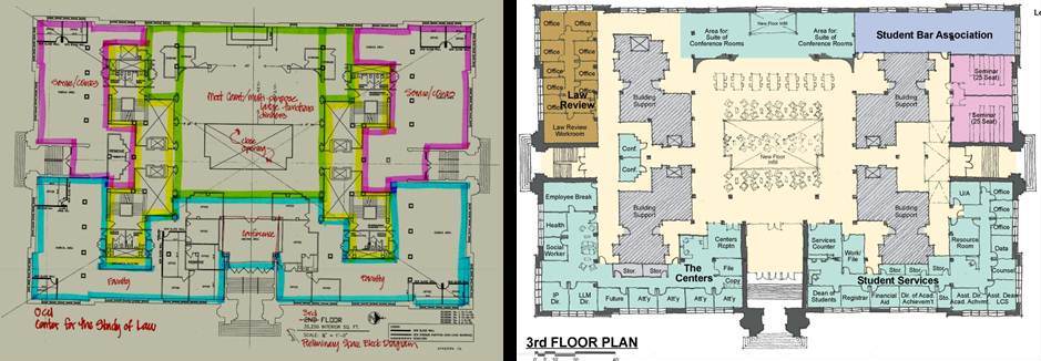 Our investigation with the key leadership of the school of law flushed out a few modifications. There was a changed emphasis on some of the outreach programs, the classroom sizes and distribution had changed somewhat and the projection of the need for faculty offices had grown. There were other tweaks and refinements here and there with a net growth in the gross square footage desired.