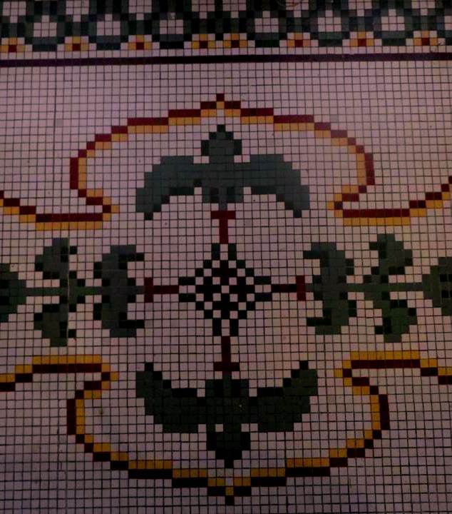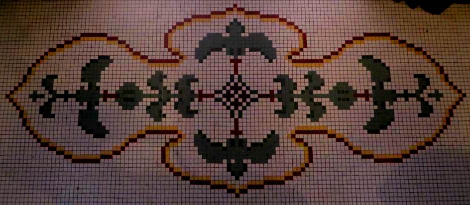 The main east entrance brought you into a large vestibule with detailed artwork in the mosaic tile layout in the borders of the room. The close up photos shows the intricate layout of the elements of the art.